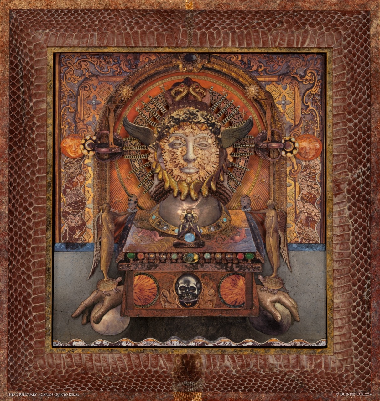 At the heart of this sanctuary is Carlos Quinto Kemm, a master of painted dimensional collages. Carlos draws from the essence of duende to craft works that breathe with life, a soulful fusion of textures, colors, and forms that evoke awe and introspection. Here, the past and the present intermingle, the tactile and the intangible coexist, and every piece serves as a portal into the unseen.
